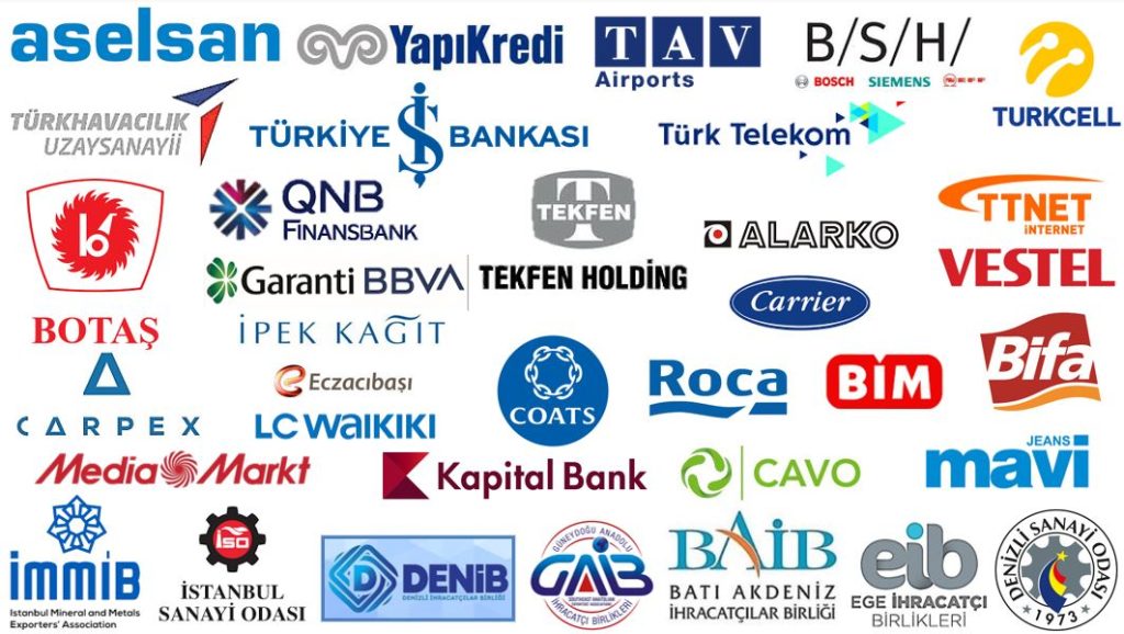 Yapı Kredi Bankası, Garanti BBVA, Türkiye İş Bankası, Tekfen Holding, TAV Airports, BSH(Bosch and Siemens) Group, QNB Finansbank, Turkcell, Ekol Lojistik, Zorlu Enerji, İTKİB, İMMİB, Türkiye Bankalar Birliği, Mavi Jeans, TTNet, Türk Telekom, Sabancı Holding, Alarko Carrier, İSO, İTO, İşkur, BİM, BTA, Türkiye Finans, BIOTA Lab, Johnson and Johnson, ESM, Hugo Boss, Mak-Yol, İpek Kağıt, GSK, AKPlas, Grammer Koltuk, STM, Punteks, Permak Makine, Estas, Suvari, Ozak Tekstil, Aydınlı Group, Özcanlı, İlsan Tekstil, Öztiryakiler, Yıldız Holding, Boytaş Mobilya, Acıbadem Hastaneleri, LC Waikiki, Düzey Pazarlama, Aksa Akrilik, Avon Kozmetik, Septaş, Alcatel, Solar Çatı, MediaMarkt